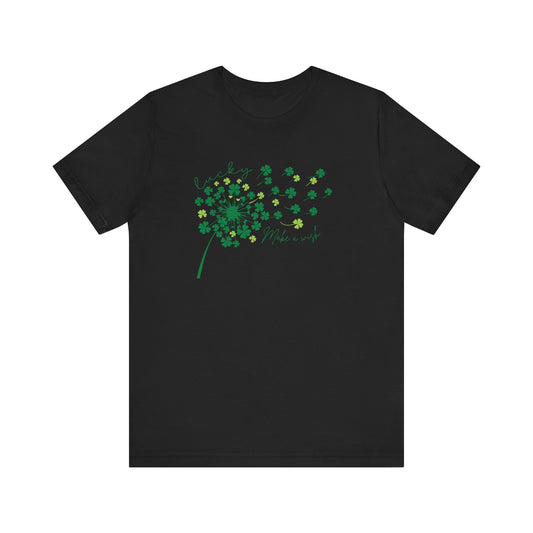Make a wish Lucky Clover Short Sleeve Tee | St. Patrick's Day Shirt, Casual Wear, Gift for Her, Spring Style, Make a Wish Tee