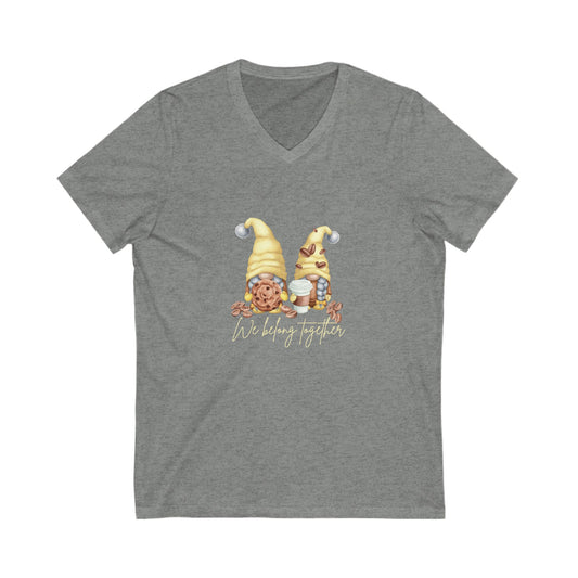 We Belong Together Gnome V-Neck Tee, Cute Gnome Shirt, Funny Couple Top, Gift for Friends, Family Matching Outfit