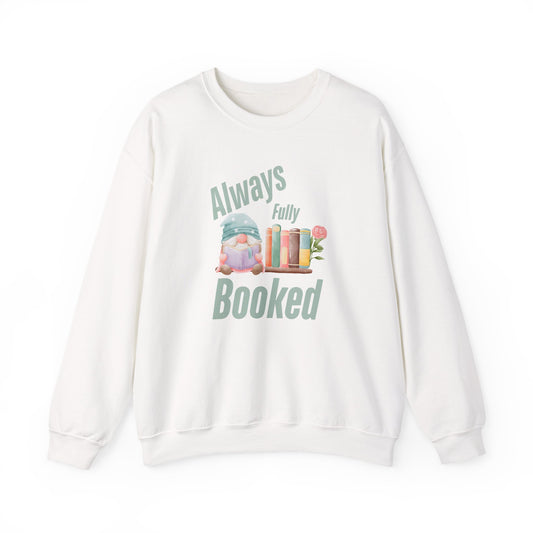 Always Fully Booked Crewneck Sweatshirt | cozy book lover gnome, Literary Gift for Book Lovers, Reading Sweatshirt, Perfect for Cozy Nights