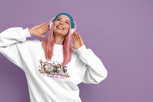"Moo-ve over bunnies its Highland Cow time!" Easter Sweatshirt