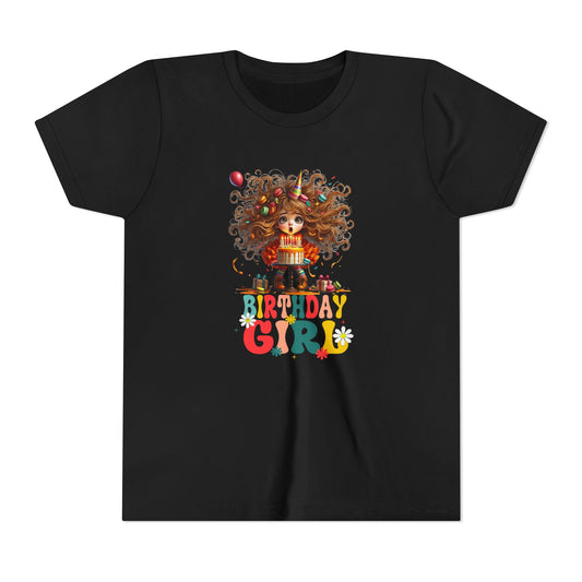 Birthday Celebration Tee, Youth Short Sleeve T-Shirt for Girls, Cute Birthday Outfit, Fun Partywear, Gift for Kids, Sweet Birthday Theme