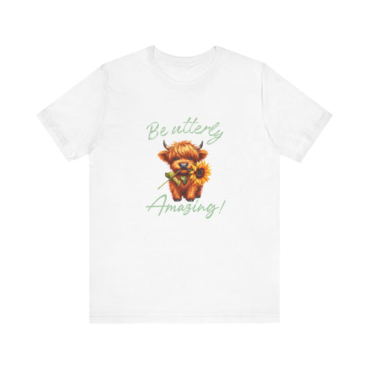Be Utterly Amazing Sunflower Floral Cow Tee, Cute Graphic Tee, Unisex T-Shirt, Animal Lover Gift, Summer Fashion, Casual Wear
