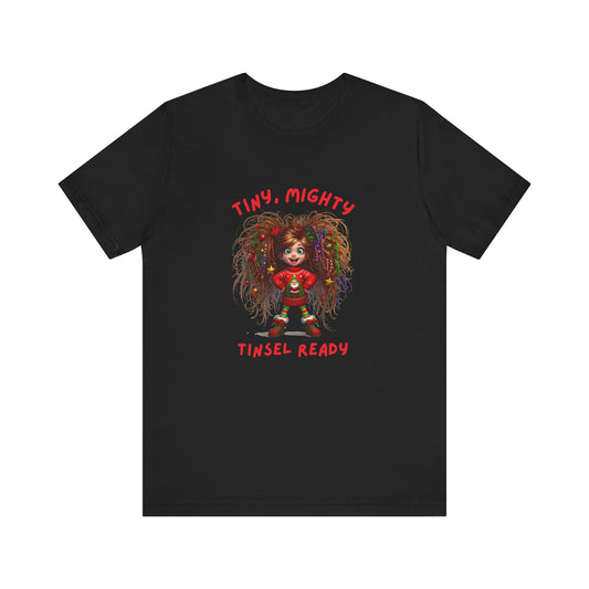Tiny Mighty Tinsel Ready Tee, Unisex Graphic T-Shirt for Strength and Empowerment, Fun Gift for Holidays, Casual Wear, Everyday Comfort