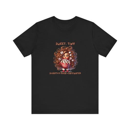 Sweet Tiny Over-Caffeinated Tee, Funny T-Shirt, Gift for Coffee Lovers, Cute Humor Top, Unisex Short Sleeve Shirt