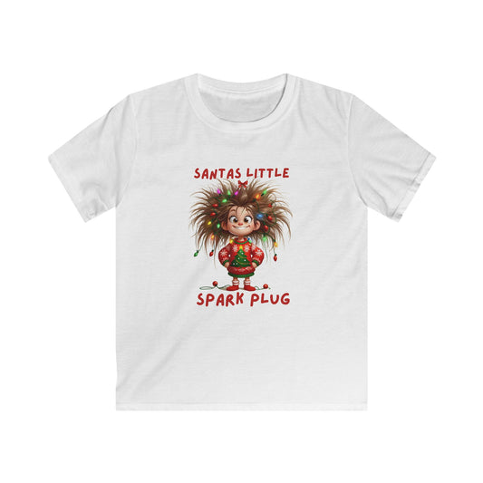 Santa's Little Spark Plug Kids Tee, Fun Holiday T-Shirt for Kids, Christmas Gift, Playful Kids Apparel, Cute Kids Clothing