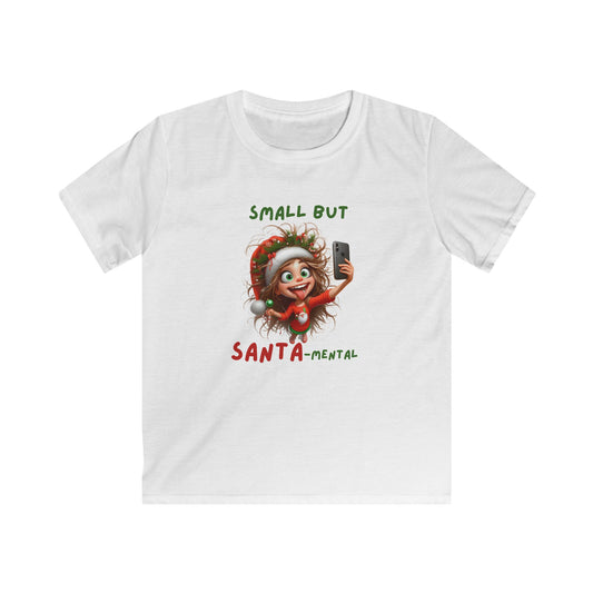 Small but Santa-Mental kids Tee - Fun Holiday T-Shirt, Christmas Gift, Youth Apparel, Cute Shirt for Kids, Santa-Themed Outfit
