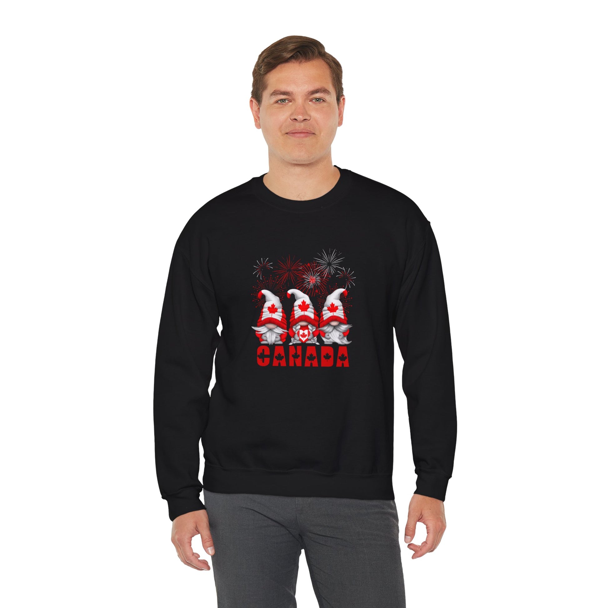 Celebrate Canada in cozy style with this adorable and uplifting sweatshirt! Featuring a trio of gnomes decked out in Canadian flag hats, surrounded by cheerful fireworks, and finished with a bold “CANADA” text—this fun graphic brings festive vibes with a touch of whimsy. Made with a soft, durable feel and a relaxed fit, this cozy crewneck is perfect for campfires, parades, cool summer nights, or sipping hot cocoa while counting your blessings. Whether you're proudly Canadian or just love spreading smiles, this sweatshirt was made to bring comfort and joy all year long.