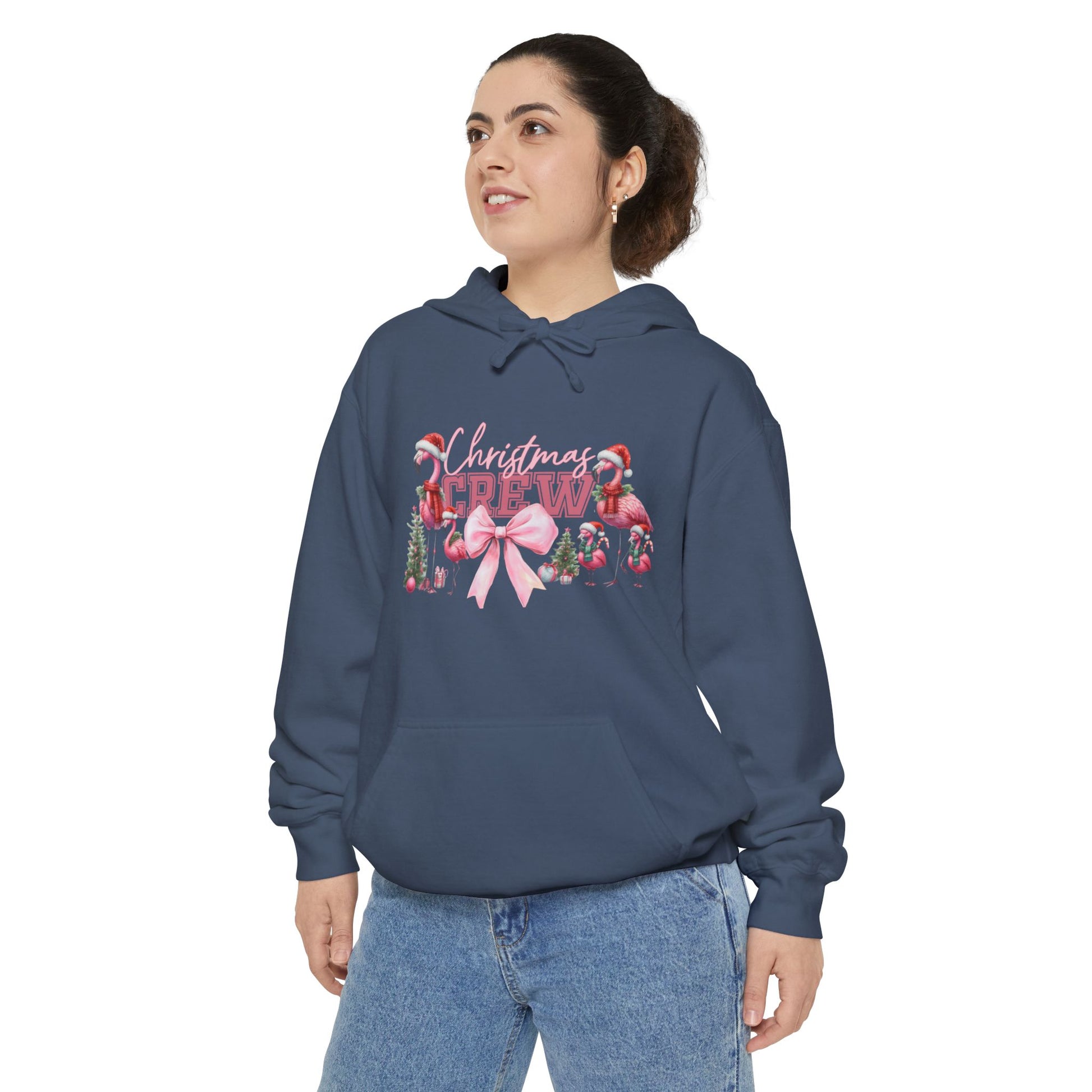Ready to join the Christmas Crew in cozy style? Grab your Christmas Crew Flamingo Hoodie today and spread festive cheer all season long!
