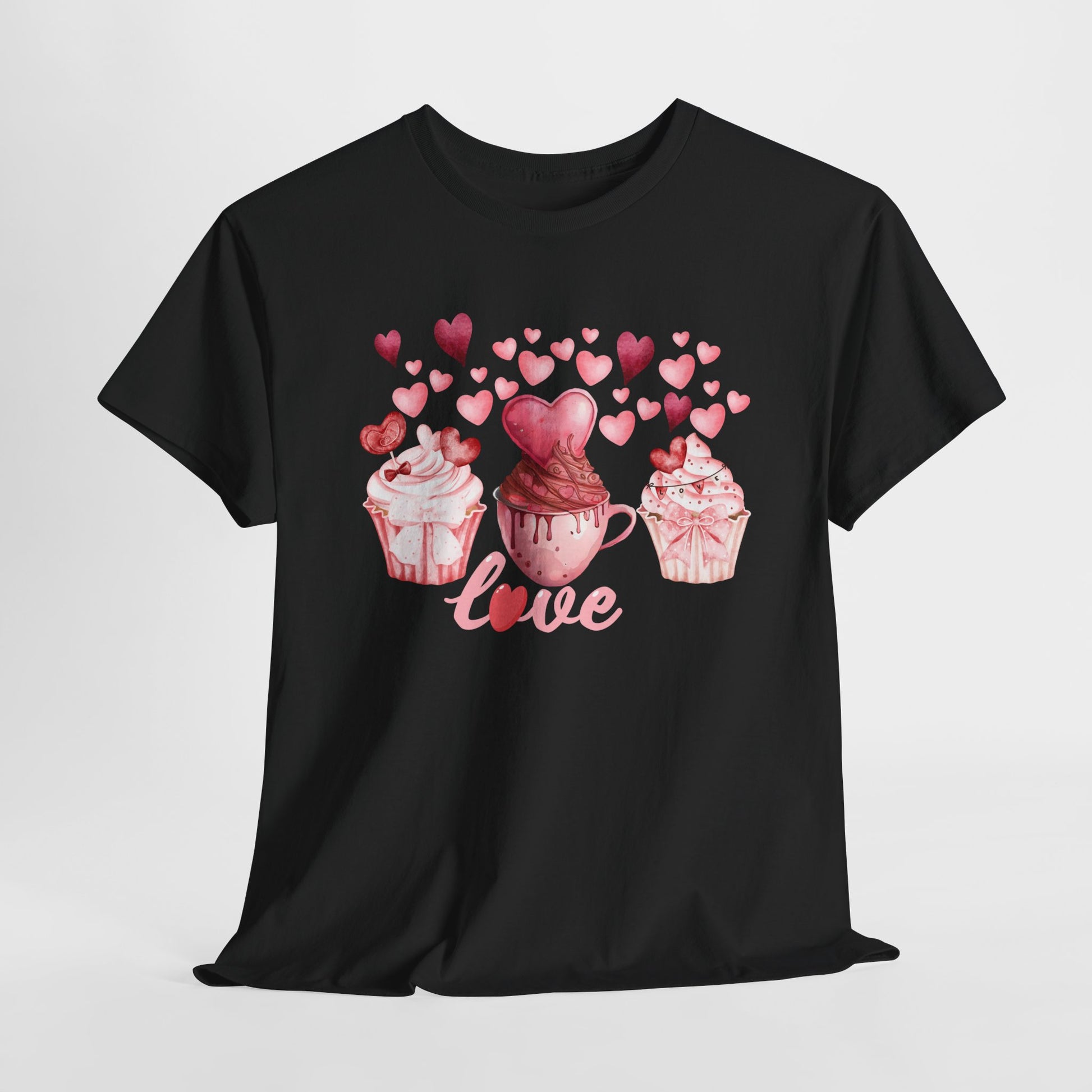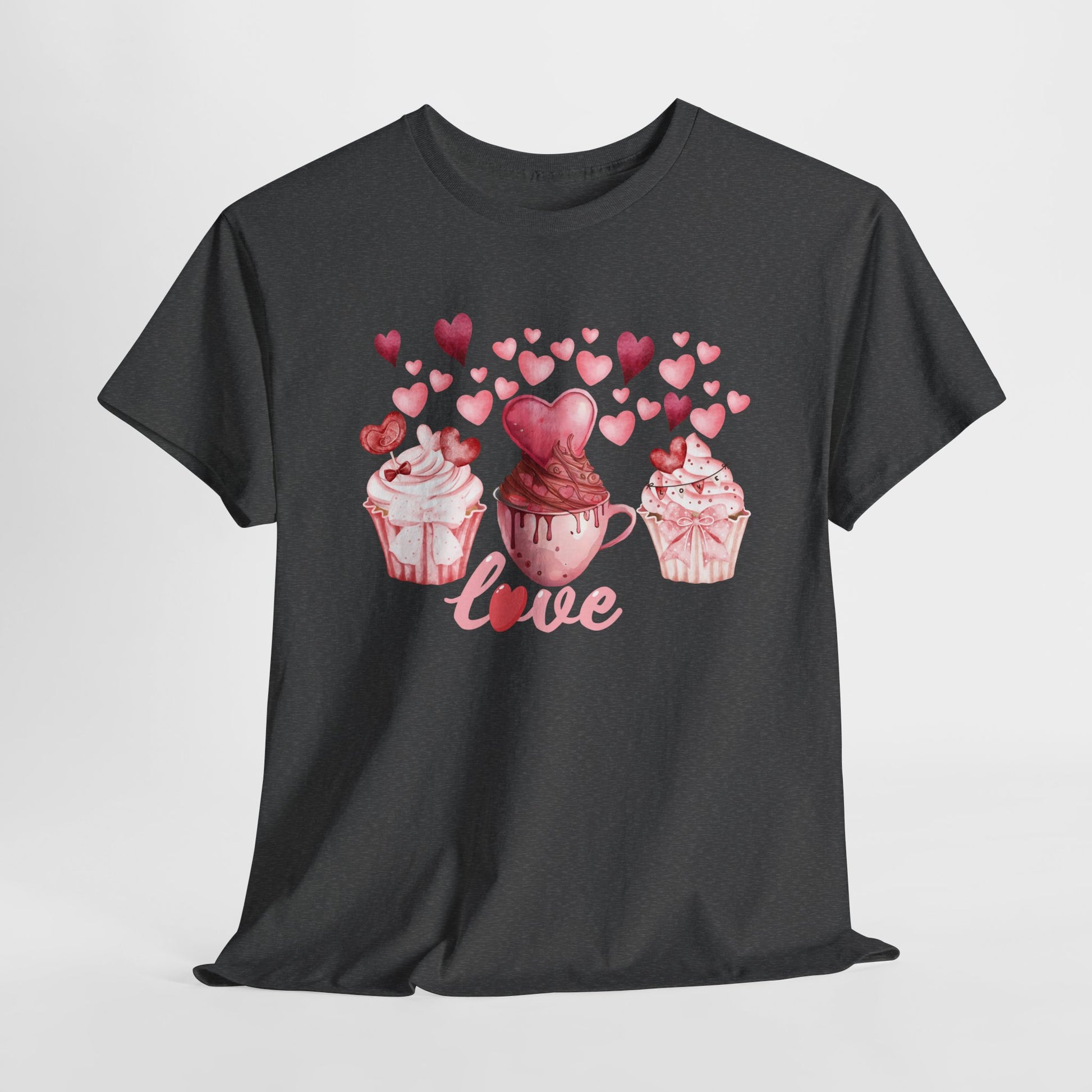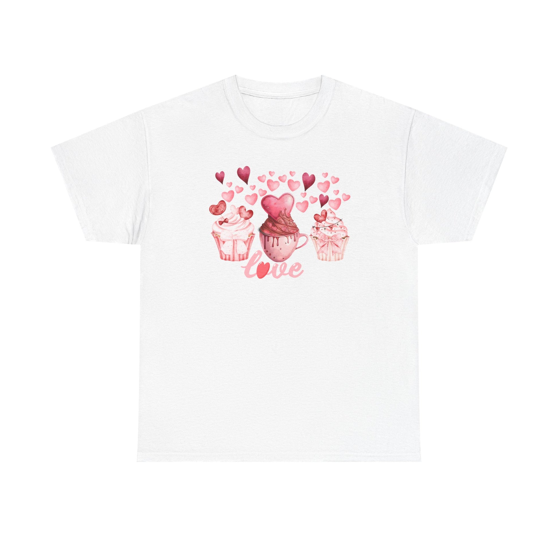 Pink Cupcakes and Hearts T-Shirt! Love Cupcake Unisex Heavy Cotton Tee, Cute Dessert Shirt, Valentines Day Gift, Sweet Treats Apparel, Birthday Party Top, Comfortable