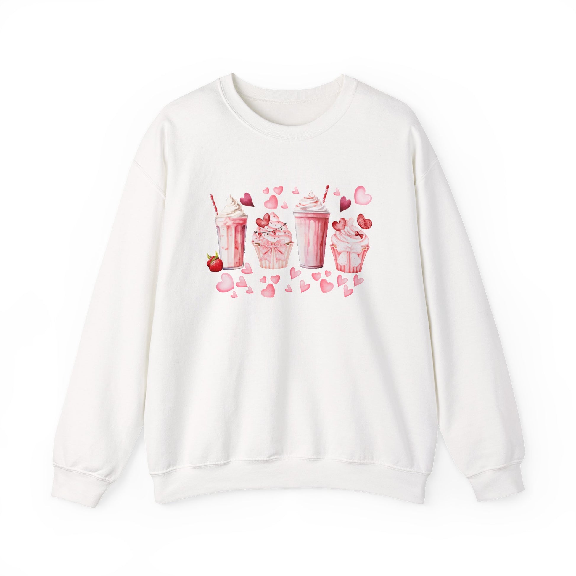 Sweet Treats Love Sweatshirt, Cozy Valentine's Gift, Cute Cupcake Apparel, Dessert Lover Crewneck, Girls' Night Out Style, Heart-Themed