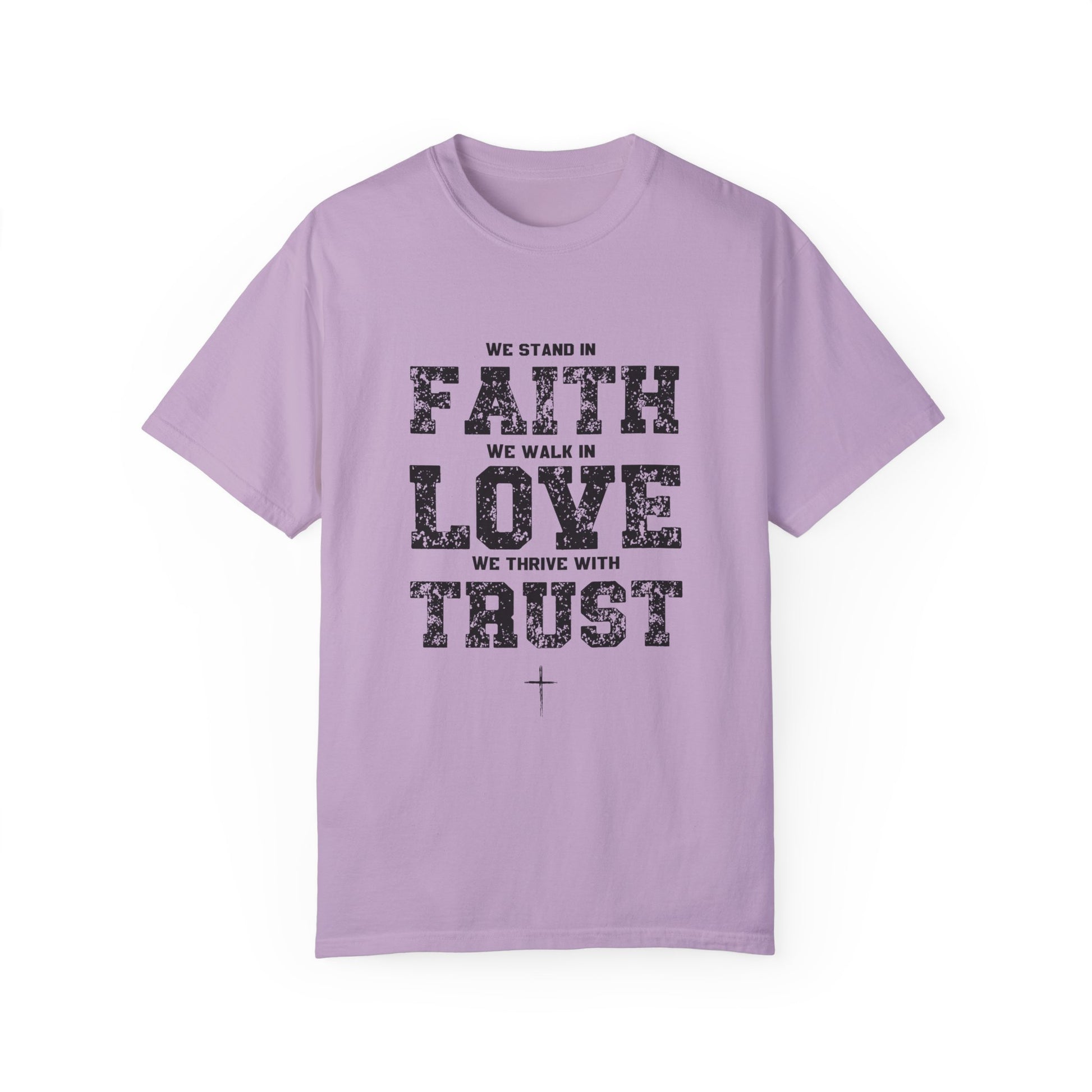 We stand in Faith, walk in Love, Thrive in Trust, Inspirational Unisex T-Shirt